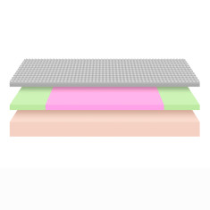 Capa intermedia que se caracteriza por brindar confort y soporte en grado medio, aislando el movimiento en la superficie del colchón. Esta capa permite conservar la curvatura natural de la columna al acostarse boca arriba y mantiene la columna recta al acostarse de lado. Se encuentra dividida en 3 zonas: