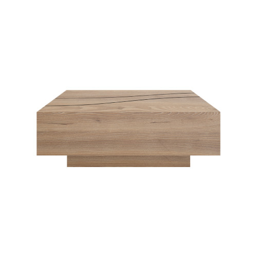 Mesa de centro en forma cuadrada con un diseño en líneas curvas grabado en su superficie. Posee una cualidad atemporal que facilita acoplarla con cualquier estilo de decoración.