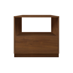 Mesa de noche de estilo moderno en líneas rectas. Tiene un cajón inferior con amplio espacio de almacenamiento. Apertura sin manija, la tapa del cajón cuenta con un borde biselado de fácil agarre y desliza con facilidad gracias a un herraje tipo riel. Por su parte superior dispone de un espacio abierto para almacenaje adicional. Elaborado con materiales de calidad, resistentes y duraderos para que puedas utilizarlo por muchos años.