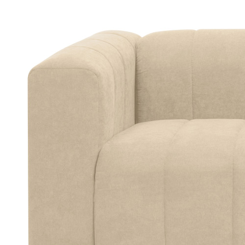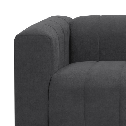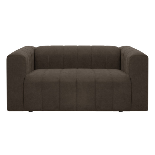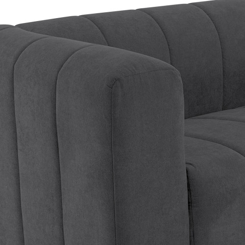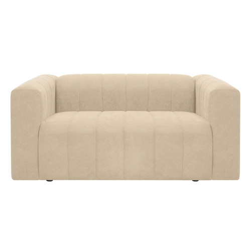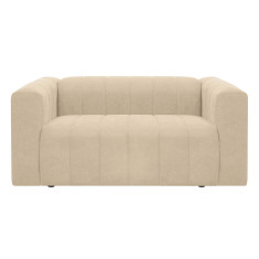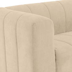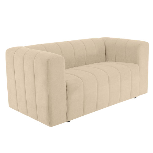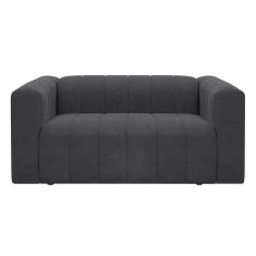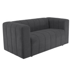 Cómodo y llamativo sofá de dos puestos. Diseño moderno, tapizado en textil acolchado en forma acanalada que no solo destaca visualmente, sino que además aporta un grado adicional de comodidad. Es un sofá de brazos altos y recueste leve que brinda una sensación de abrazo, lo cual invita a pasar un rato confortante. Combina fácilmente con cualquier estilo de ambiente, ideal para una sala, oficina e incluso un dormitorio amplio.