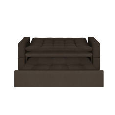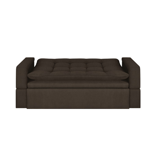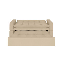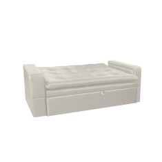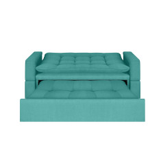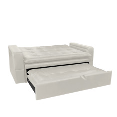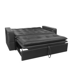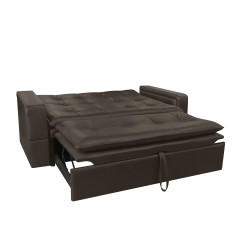 Diseño clásico y elegante, con alto grado de confort. Se trata de un sofá cama de 2 puestos con 3 posiciones en su espaldar: sentado, ver tv y acostado. Fácil de manipular mediante un sistema clic clac en su espaldar y uno de arrastre para convertir en cama. Posee una colchoneta adherida en su superficie para proporcionarle mayor comodidad.